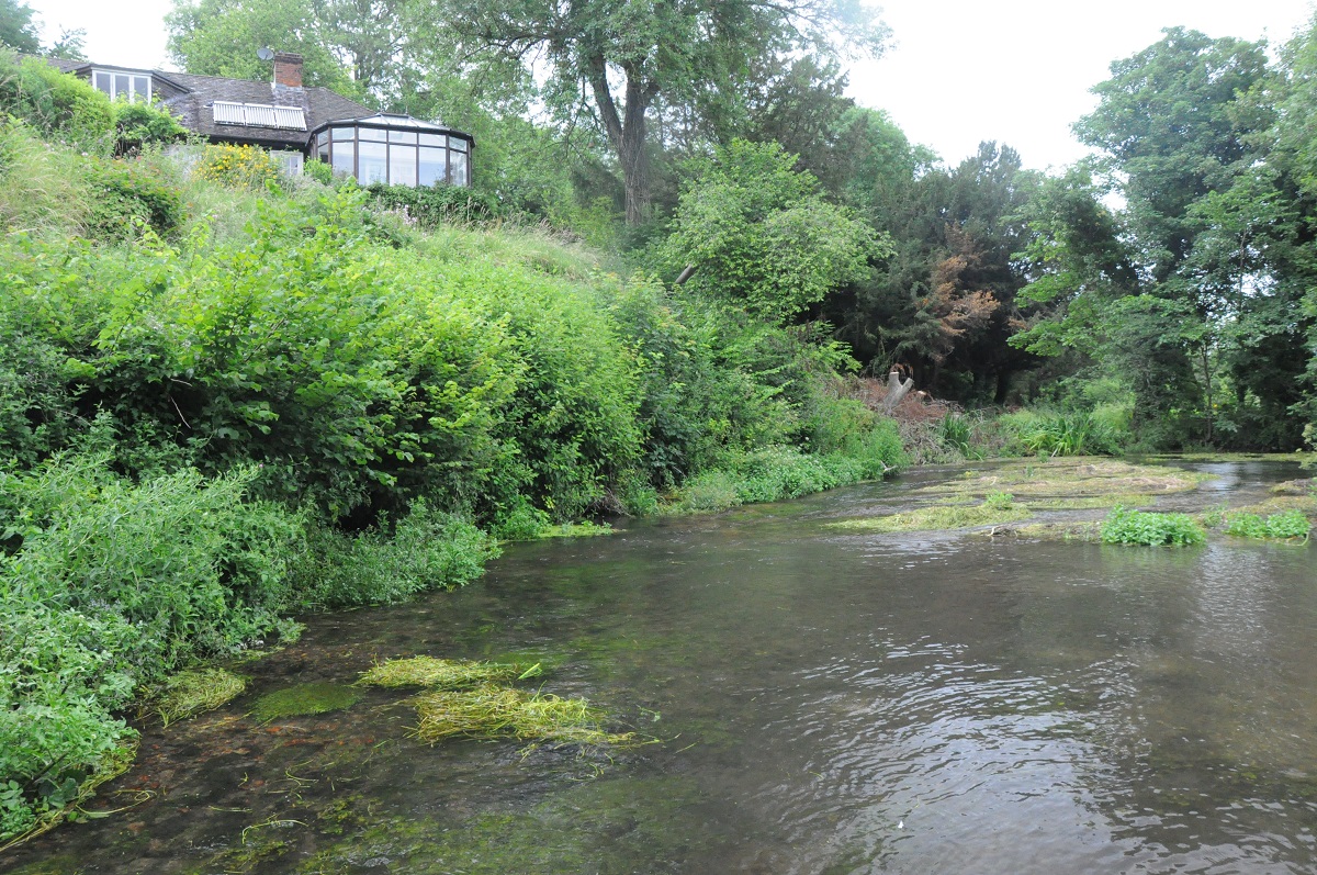 The steep and heavily eroded bank was stabilised by the installation of a chalk buttress at its toe. Further erosion to the banks is prevented by the revetment, and the redistribution of the channel gravel which centralises the flow of the river.