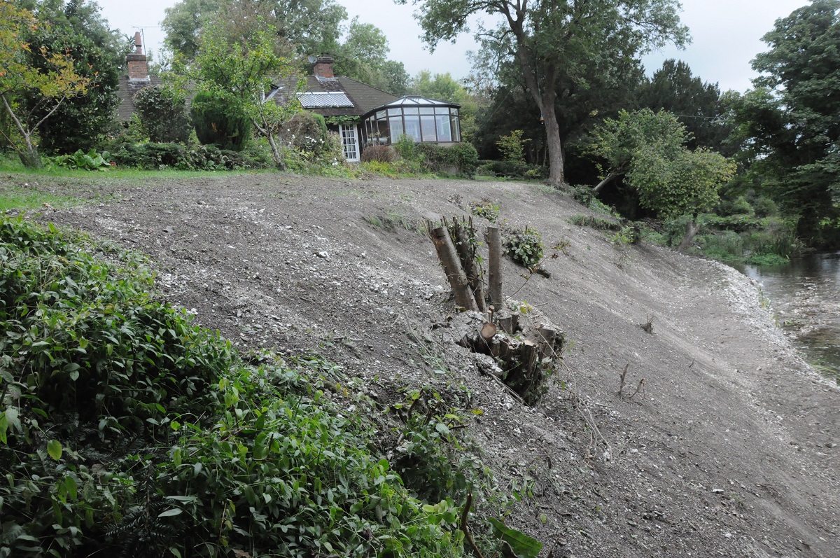 The steep and heavily eroded bank was stabilised by the installation of a chalk buttress at its toe.