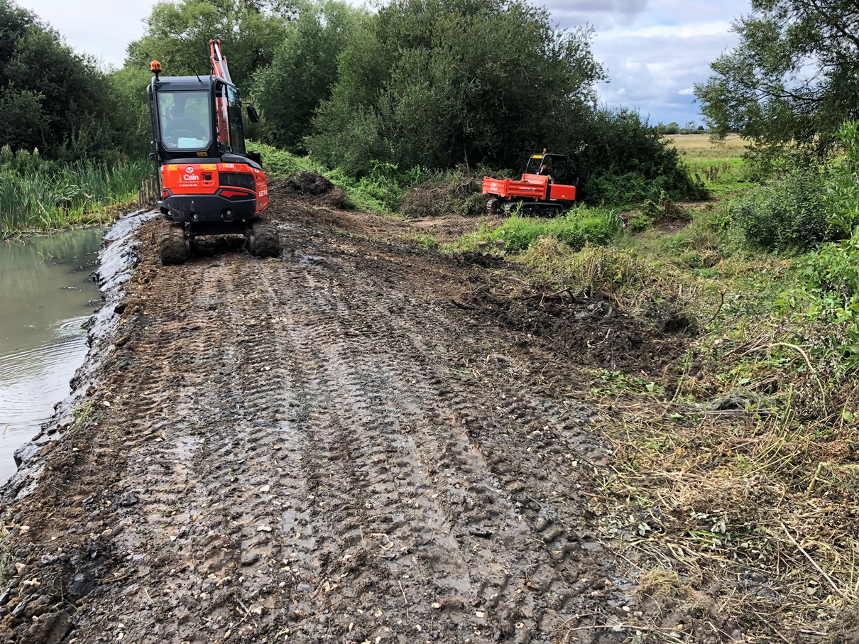 Having flooded a vast area of the neighbouring fields, an emergency solution was put in place by Cain Bio-Engineering in January of 2018 using sand bags and geo-textiles to contain the river. Later in the year, the temporary repair structure was removed and replaced by a solid and long lasting solution, protected from further erosion by a two-tier coirnet revetment.
