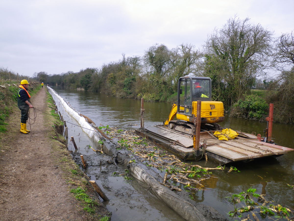Work now commenced to stake out the original outer bank line with hardwood posts to form both an inner high-level and outer low-lying terrace close to the waters edge. Geotextiles are fitted and the subsequent cavities back-filled with dredged sediment from the canal bed. The completed terraces are planted with a selection of native canal and wetland species.