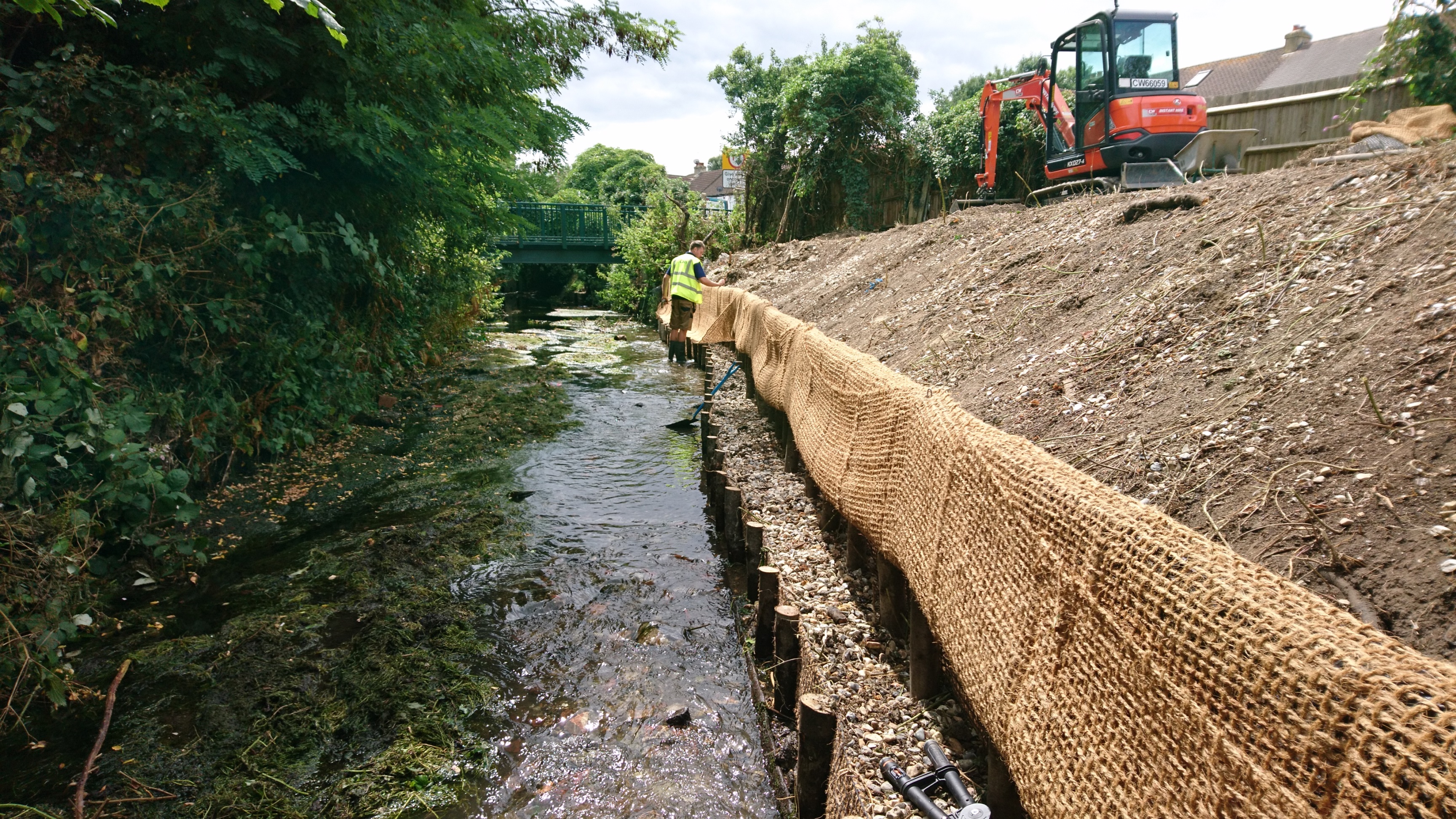 Cain Bio-engineering was contacted in February 2018 by the owner of a private garden with a 25m stretch of Pyl Brook running along its side. Continuing erosion had caused the garden to slope down towards the stream, causing it to have a reduced workable area.