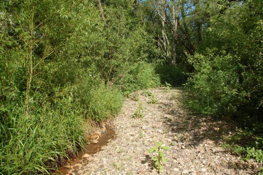 The new backwater channel (dug initially to redirect flows) was left intact on project completion to provide a deeper discreet backwater refuge for migratory fish. This eventually became the primary flow path with the opposite repaired bank serving only as a flood relief channel during times of high flow.