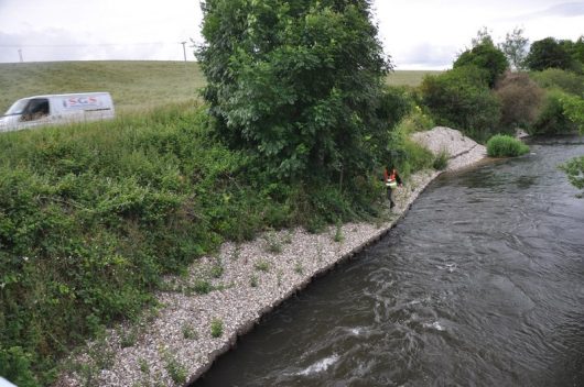 The completed works successfully reinstated the eroded bank margin near the major trunk road and around the farm access bridge and in doing so delivered an aesthetically pleasing, environmentally sensitive solution; for approximately a third of the cost of a more traditional hard-engineered solution.