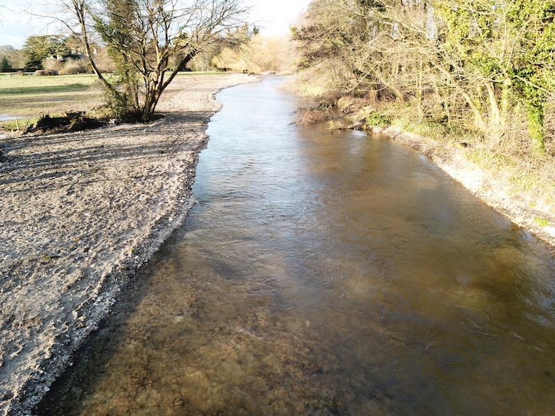 Dredged, dammed-up river channels act as huge sediment repositories. They appear dark, dead and bottomless due to the blanket covering of eroded agricultural soil, rubber tyre granules and chemical compounds flushed into the river from roads and agricultural land drains in the upstream catchment. These unwanted alien substrates combine with a cocktail of chemicals including Phosphates and Neonicotinoid insecticides to create a toxic and severely degraded in-stream habitat.