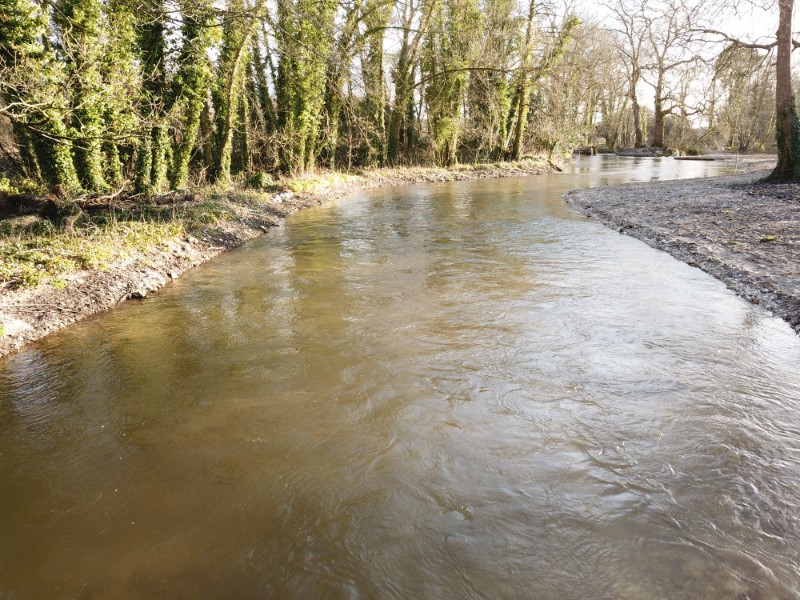 - Excavation of the true R/H angler bank to form a new gravel-fronted outside meander.